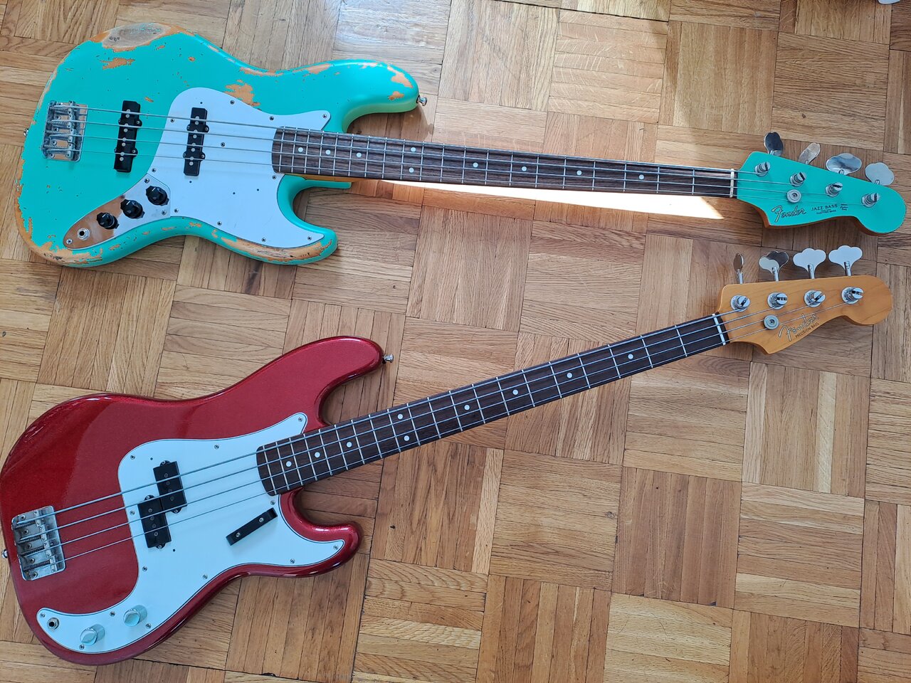 Nä, du hast den in Seafoam Green gekauft? Der hat mich auch sehr angesprochen! Glückwunsch dazuAuf der anderen Seite meine beiden Japan Fender Bässe von Restauracja gitar.