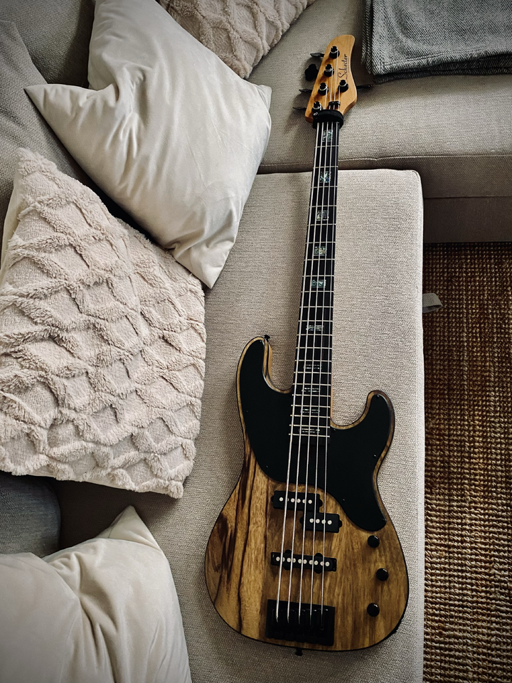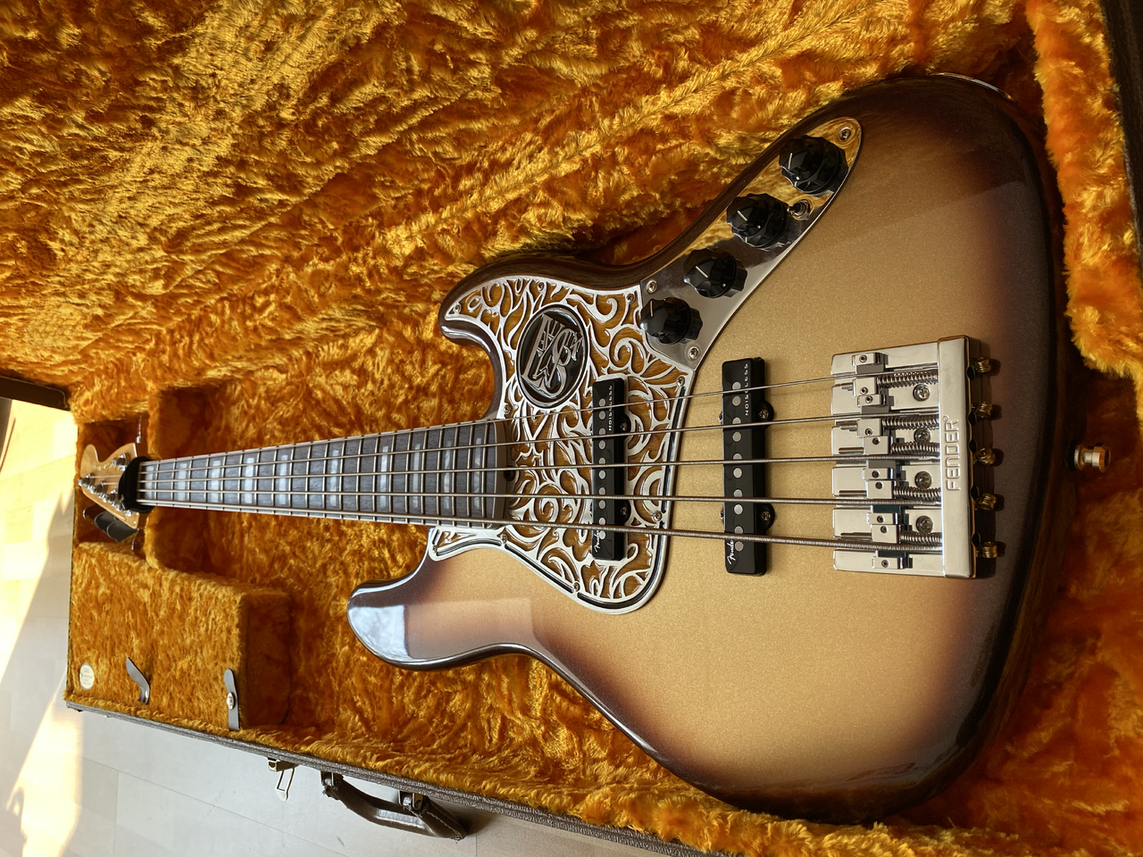 6. 2021 Fender American Ultra Jazz Bass V in Moccha Burst (Handmade Alperious Pickguard)