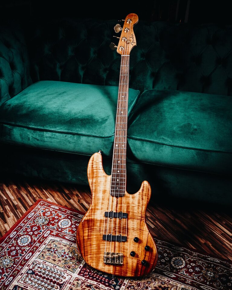 Hier mein American Ultra Jazz Ltd. in Mystic Pine Green mit markanter Griffbrettmaserung.