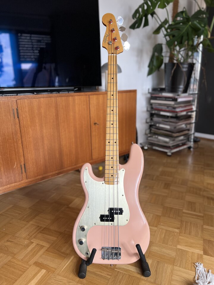 Hatte dem Kollegen schon per PN geantwortet. Der Bass hatte auch mal einen 60‘s statt dem jetzt drauf montierten 70‘s Mendel Neck@Hozzy hatte den LPB mal in einem der Bau-Threads vorgestellt, ich weiß aber nicht mehr, ob's Franchin, Docwood oder der Frankenstein Thread war ... Vorlage für den Bass war jedenfalls der auf Seite 3 gezeigte 1964er Lake Placid Blue.