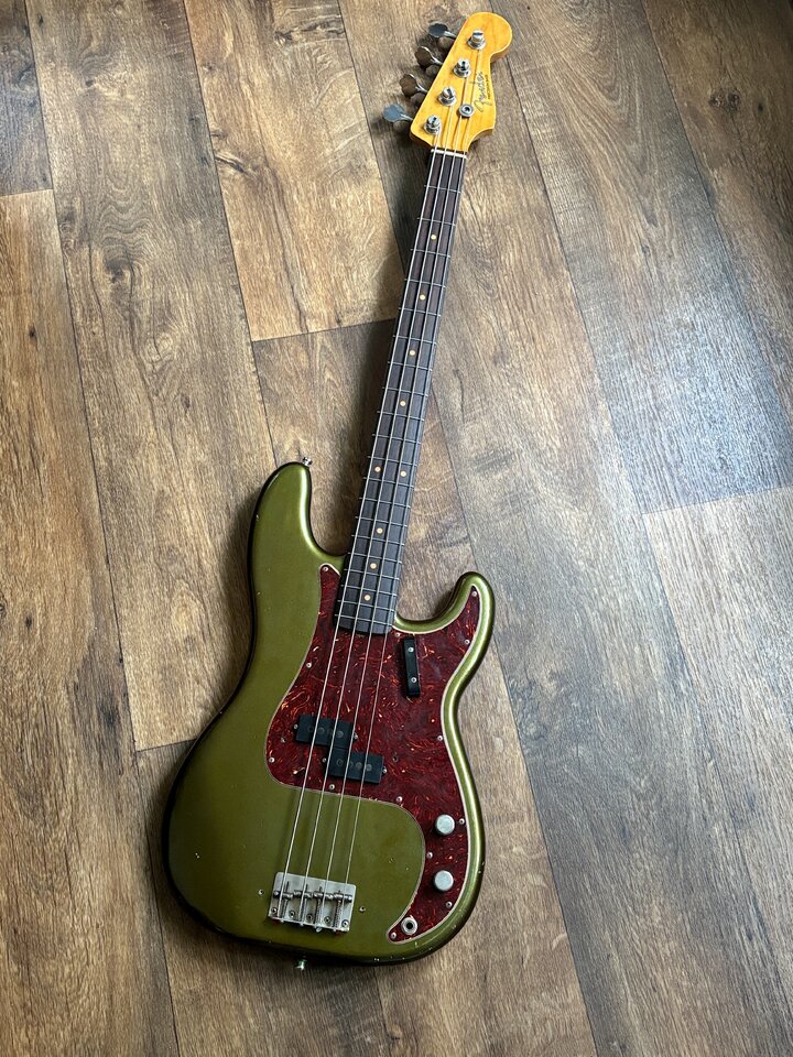 Docwood Swamp Ash in metallic olive drab, SPB3 vom Nate Mendel, Fender PG und Hardware (relic), Fender 60s AO Neck, Gotoh Resolites
