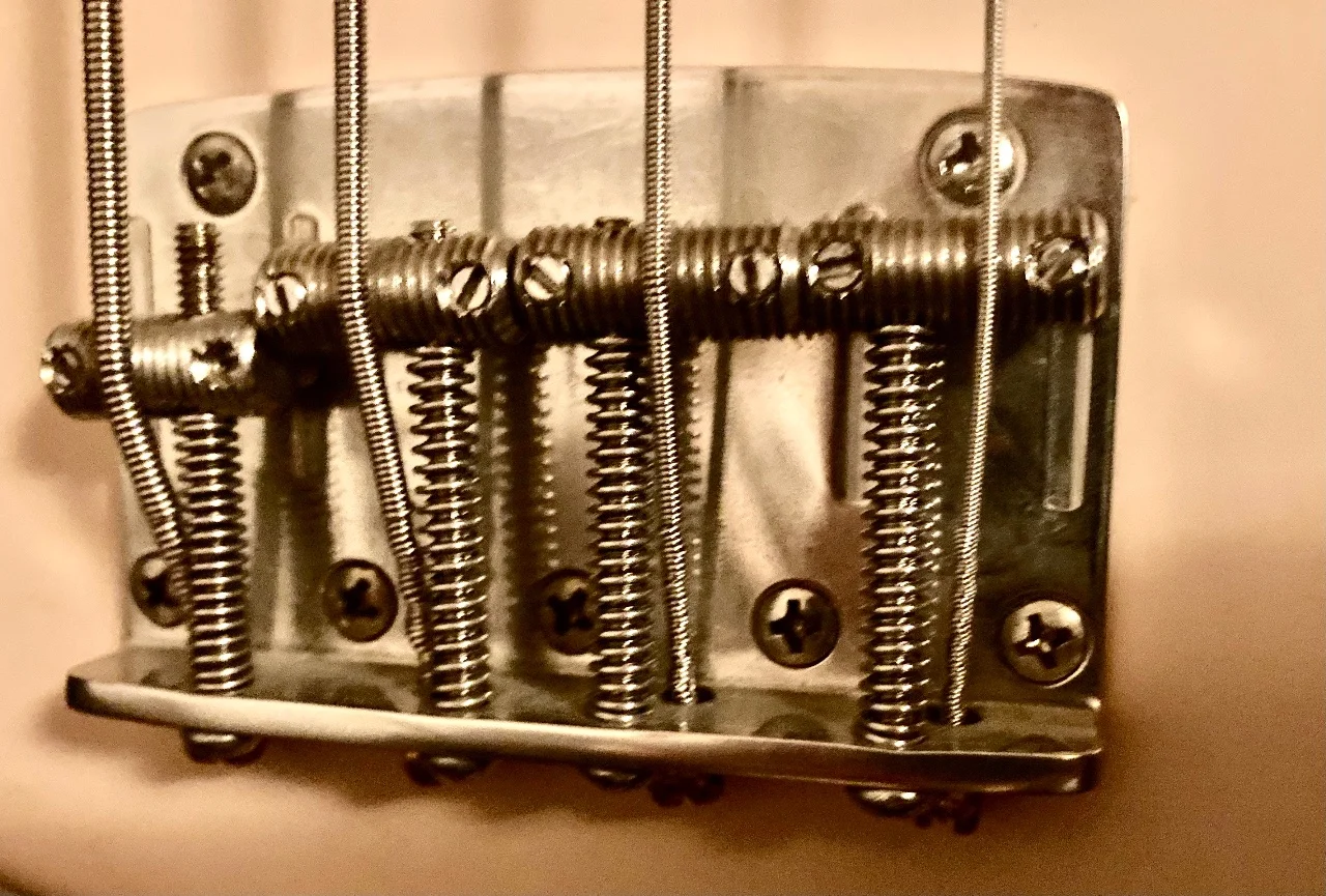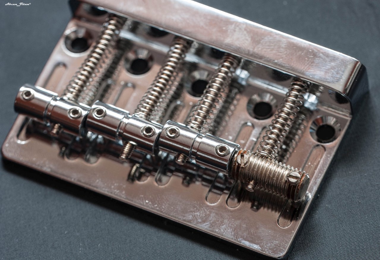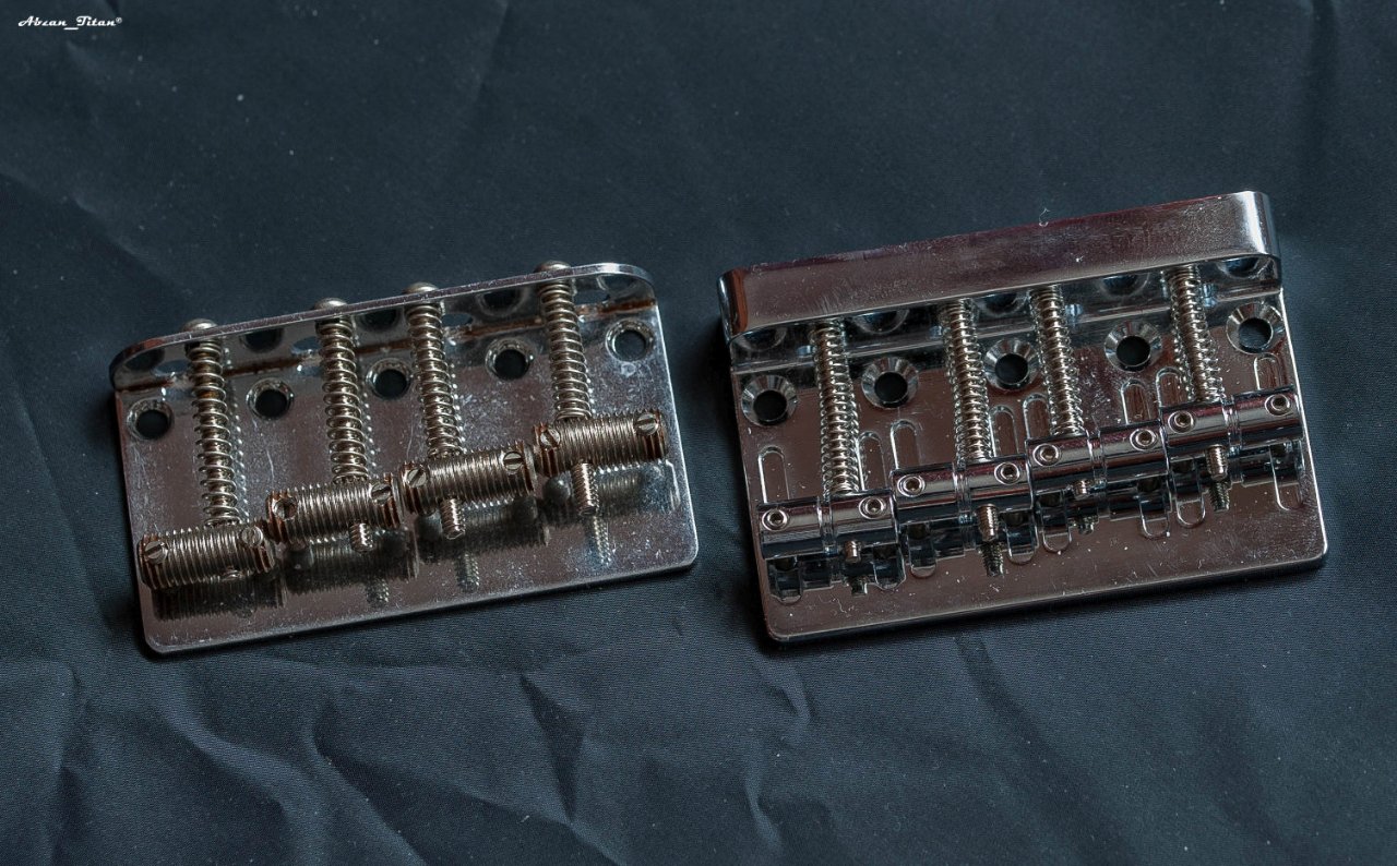 Und wann man die original Gewinden samt Blöckchen umsetzt? Auf einem meiner Mexikaner hat sich mal das Blech der Brücke verbogen. Auf die Schrauben der als Ersatz montierten Brücke Gotoh 203B-4 passten die Gewinde-Blöckchen auch nicht. Mit original Schrauben ging es dann. auch die Führungen der Gotoh unter E und G sorgen mehr für StabilitätIch hatte mir die Bridge von musiclly auch mal blind bestellt, da sie nicht ganz so klobig wie die üblichen Himass Bridges ist, aber trotzdem mehr Masse als der Blechwinkel hat. Mein Plan war, die originalen Böckchen von meinem American Performer PB zu montieren (die haben auch mehrere Rillen zum Verstellen des stringspace), aber sie haben leider ein anderes Gewinde.