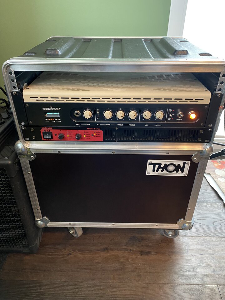 Eine Charakteranlage bestehend aus Mesa Subway-DI, Trace Elliot VR 400 und modifizierter Ampeg Box mit JBL Speaker.