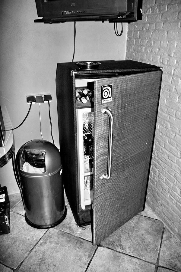 Endlich mal eine Sinnvolle Nutzung des Boxengehäuses. Nee mal im Ernst, Ampeg Kühlschranke liebt man, oder man hasst sie. Ich finde die soo ätzend..der auch...